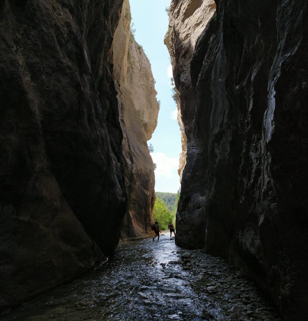Un desfiladero de altas paredes se abre paso en nuestro camino.